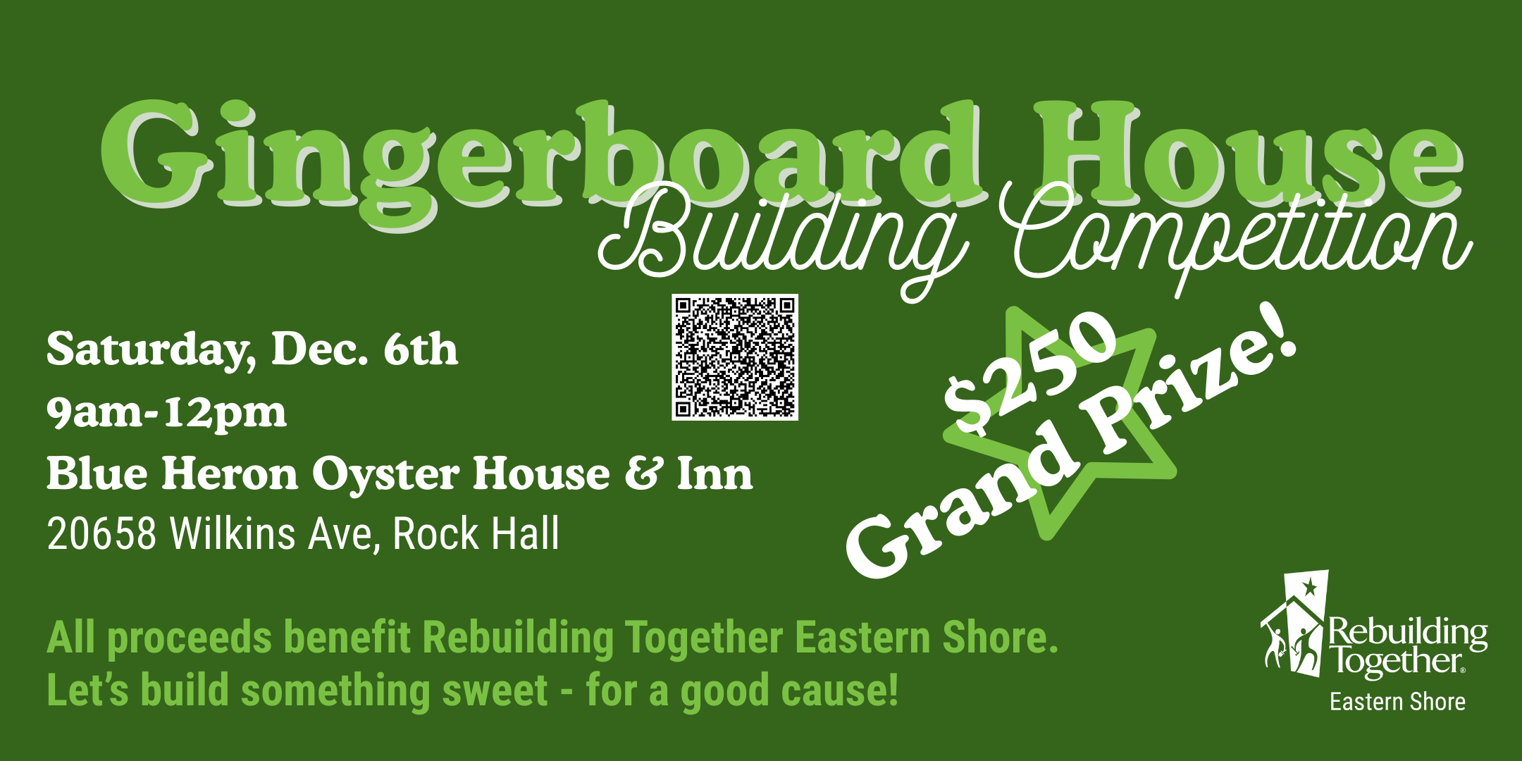 A special thanks to Blue Heron for hosting our first annual Gingerboard competition! Contestants can take their creations home immediately or let us display them for two weeks at Fresh Start. Those on display will be eligible to win this year’s People’s Choice Award and still have their homes for holiday day display! Ticket price is $50 per team of up to 5. Fun for the whole family.